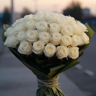 Этот утонченный букет из 37 белоснежных роз - произведение искусства, созданное мастерами флористики. Он испускает необыкновенное сияние. Этот букет - олицетворение элегантности и чистоты. Он притягивает взгляды и вызывает бесконечное восхищение своей простотой и благородством. Сочетание белоснежных роз создает ощущение нежности и роскоши одновременно.